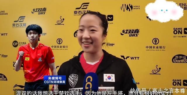 而对于八卦的韩媒来说,最关心的则是她对王楚钦的看法。当被问及是否认为王楚钦是中国队最帅的时候,申裕斌害羞点头回应,“我想是的”,而被问及如果和王楚钦搭档混双话,能否能到所有冠军呢?申裕斌也是给出了肯定答复。